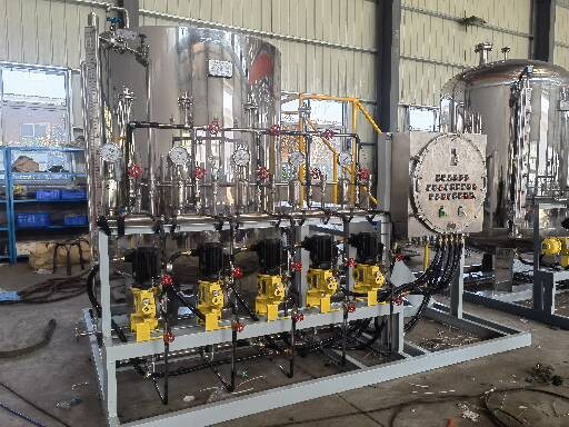 加藥裝置主要由溶液箱、攪拌器、計量泵、液位計、電控柜、管路、閥門、安全閥、背壓閥、止回閥、脈動阻尼器、壓力表、Y型過濾器等組成。 加藥裝置根據所需藥劑濃度,在攪拌箱內配置,經攪拌器攪拌均勻后投入溶液箱、用計量泵向投藥點或指定系統中輸送所配制的溶液。成套加藥裝置具有結構緊湊、安全簡單、操作遙遙簡便等特點。加藥裝置還可根據用戶不同工藝流程的要求,進行有針對遙遙的設計、配置遙遙要的部件,實現自動遠程控制等功能。