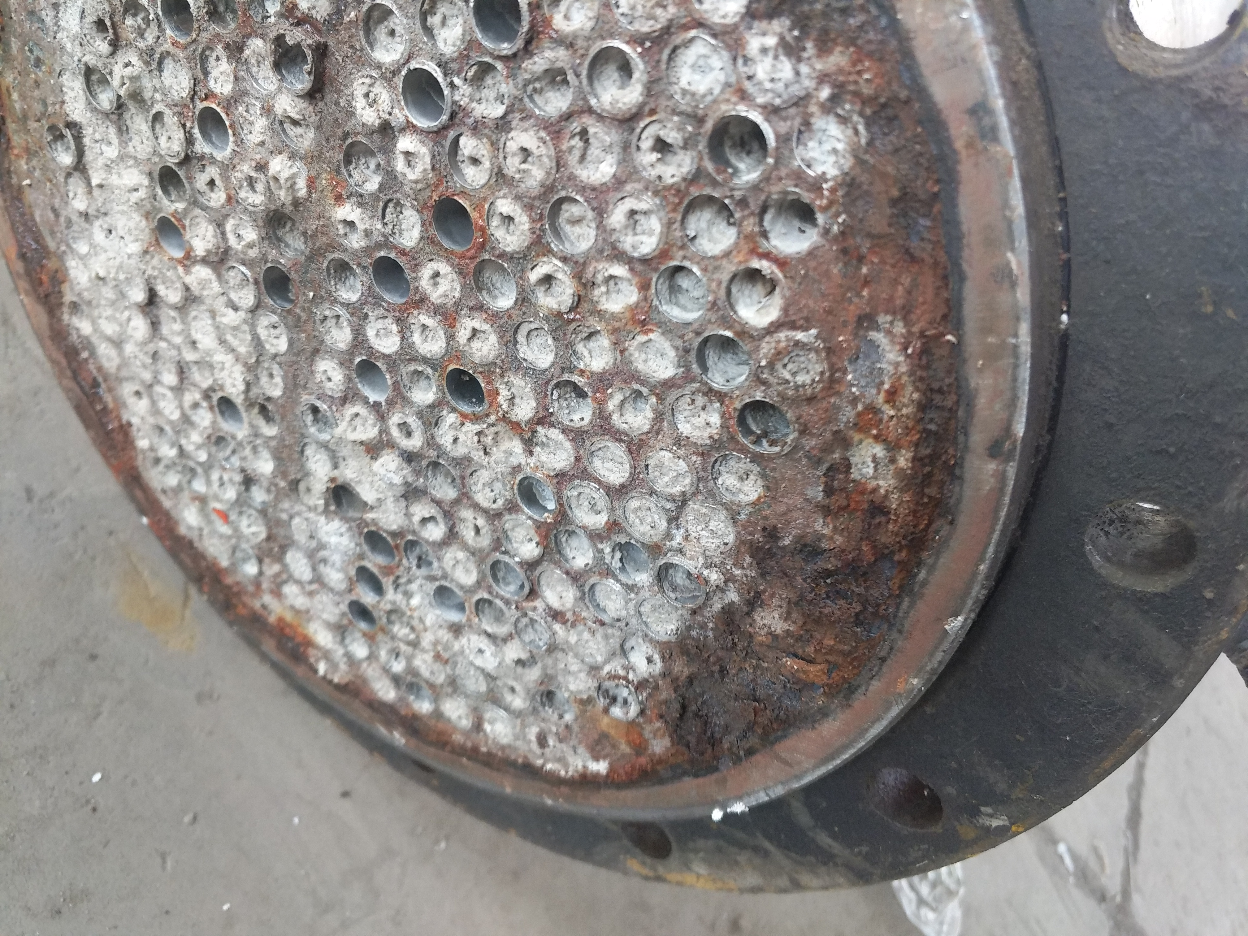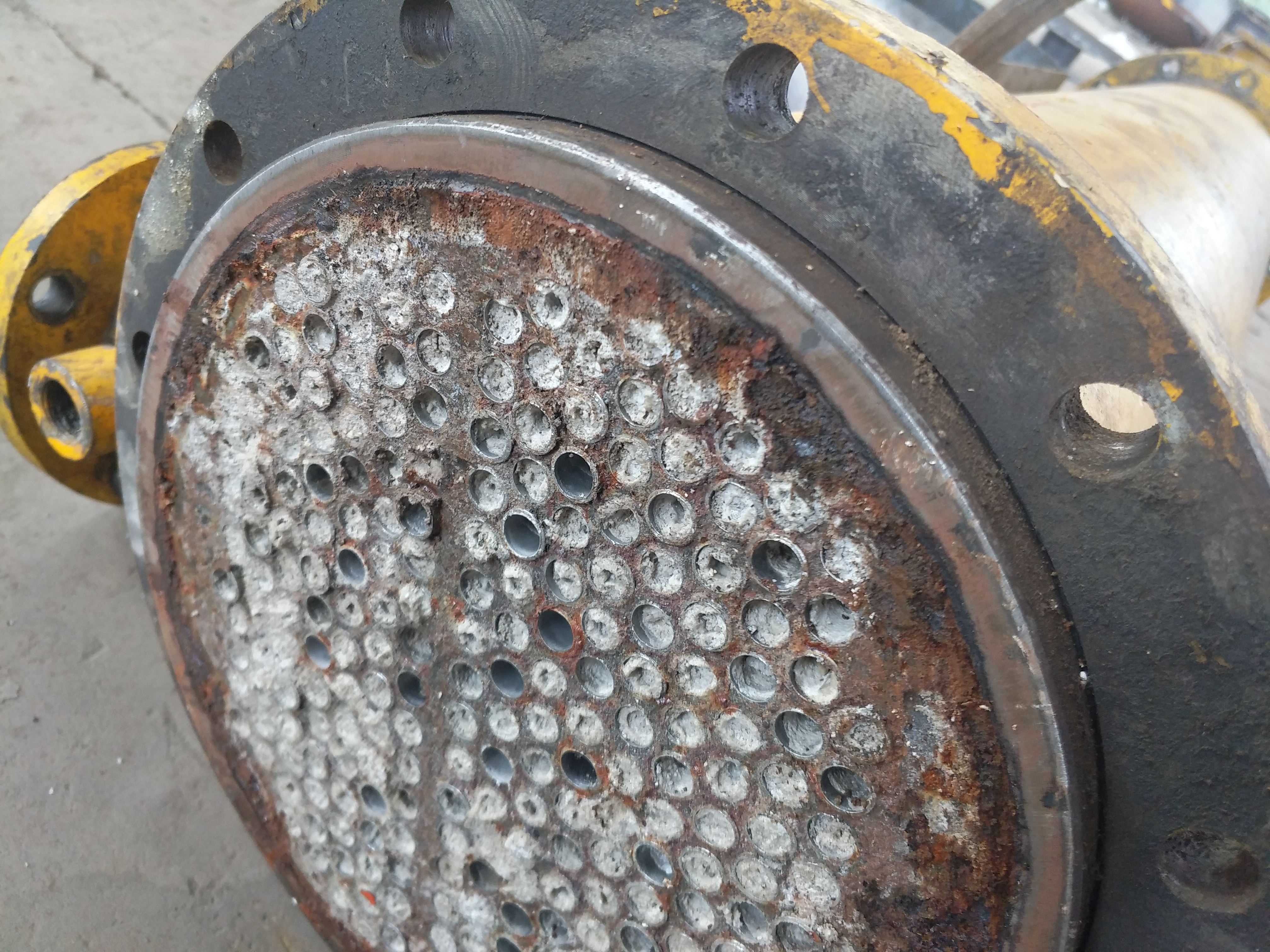 2、剔除舊不銹鋼管:選用-用半圓三角鏨子剔除,剔時注意不要損傷管板,剔光不銹鋼管,將舊不銹鋼管抽出后將管板管孔清理干凈,用細砂布打磨光潔,用布擦掉粉塵。