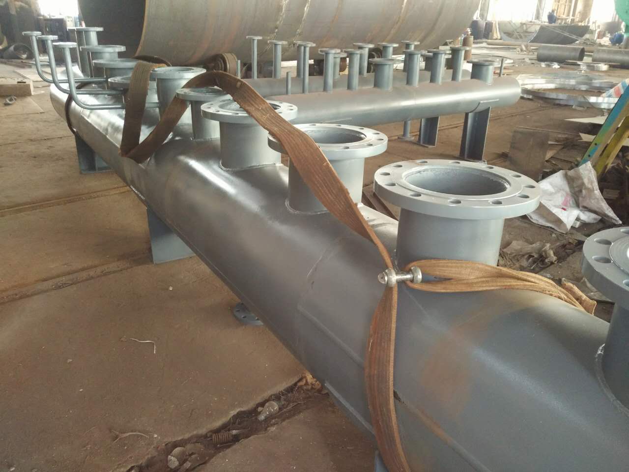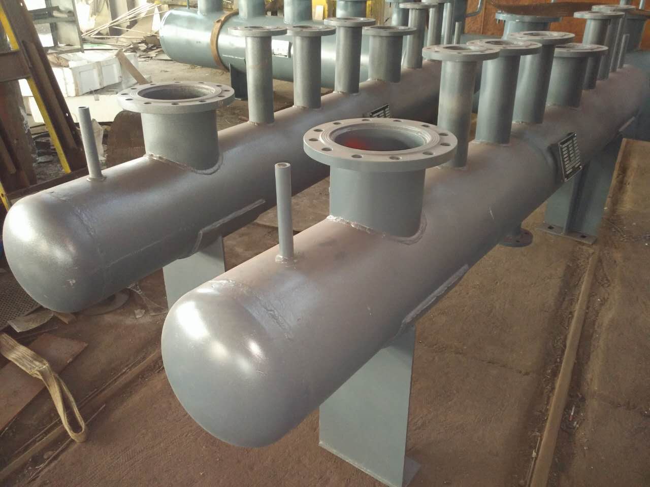 分集汽缸是由分(集)汽缸和集汽缸組合而成的汽流量分配和會集裝置。分(集)汽缸是將一路進汽通過一個容器分為幾路輸出的設備,而集汽缸則是將一路進汽通過一個容器一路輸出的設備。其管理若干的支路管道,分別包括回汽支路和供汽支路,其較大-為DN200-DN1200不等,用鋼板制作,屬于壓力容器類-業制造,其需要安裝壓力表溫度計。它一方面將主干管的汽按需要進行流量分配,保了各區域分支環路的流量滿足負荷需要,同時還要將各分支回路的汽流匯集,并且輸入回汽主干管-,實現循環運行。其回汽再利用,可達到-節能的-果,可以同時滿足供熱與制冷的需要,其-應用于鍋爐、-央空調、工業循環冷卻水系統、熱水系統。